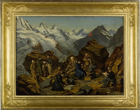 Altre importanti imprese, anche se non sempre culminanti con un arrivo in vetta, furono dettate dallo studio scientifico e dalla descrizione topografica. Vediamo cosí questi luoghi percorsi da cartografi, geologi, glaciologi, naturalisti. Celebre fu la prima salita al Lauteraarhorn (4042 m) l’8 agosto 1842, sotto la guida di Louis Agassiz e Edouard Desor, spedizione che aveva necessitato la sistemazione, sul ghiacciaio dell’Unteraar, di un bivacco sotto un tetto di rocce, chiamato ‘Hôtel des Neuchâtelois’.